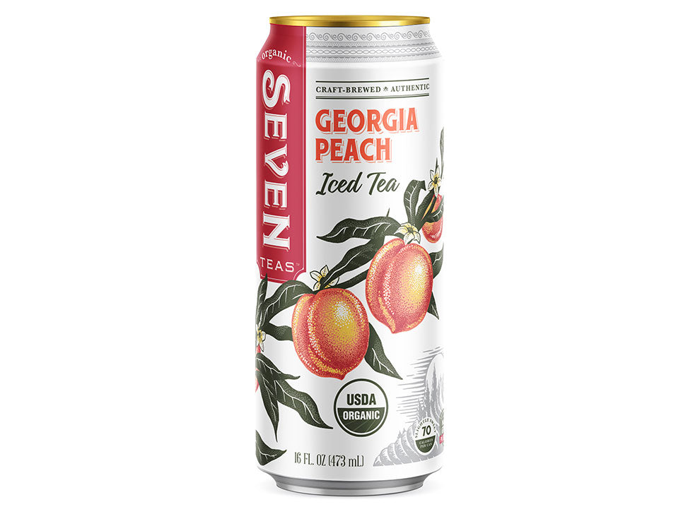 Georgia Peach Iced Tea, a perfectly paired fusion of organic peach juice and black tea.