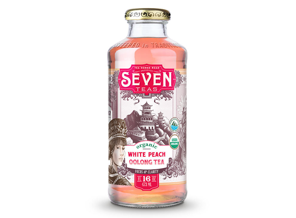 White Peach Oolong Tea, a fruity symphony of organic oolong tea, reishi mushroom, and juicy white peach.